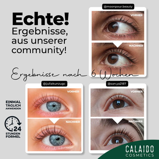 🌟 Full Refund! – Publish your results, and we’ll refund the price of your Calaido serum! Stonger lashes and brows for free?! What a no brainer.