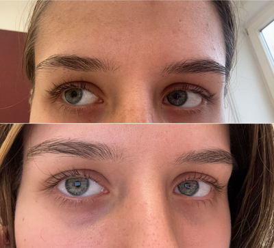 I would like to sincerely thank you for sending me the products! I wasn’t expecting it, but my lashes simply look healthier, longer, and fuller (see picture). My eyebrows also appear more well-groomed overall. At the beginning of the treatment, I had very unruly hairs, but now they look so much better.
